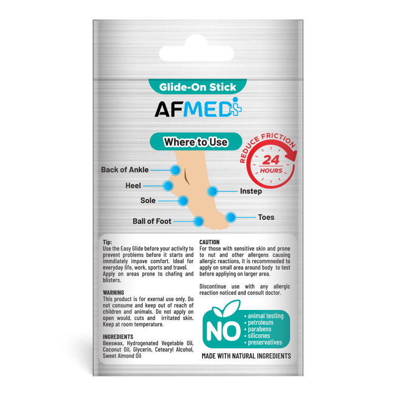 Use the Easy Glide before your activity to prevent problems before it starts and immdiately impove comfort. Ideal for everyday life, work, sports and travel.