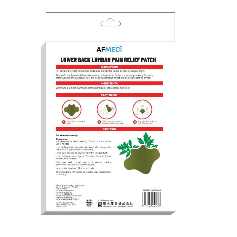 The pain relief patches are cutomised cut to fit the contour of your body for more effectiveness and coverage. Feel the deep penetrating effect and enjoy long lasting relief.