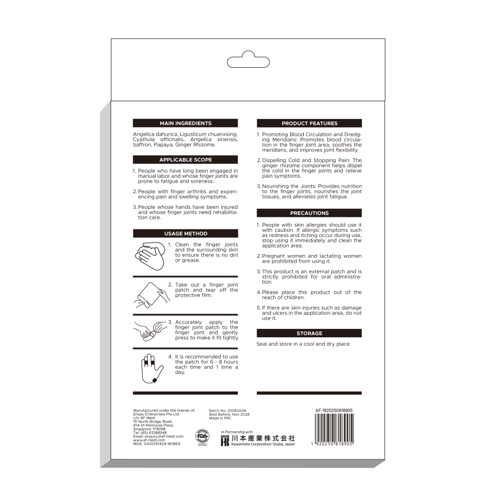 - Accurately apply the finger joint patch to the finger joint and gently press to make it fit tightly.