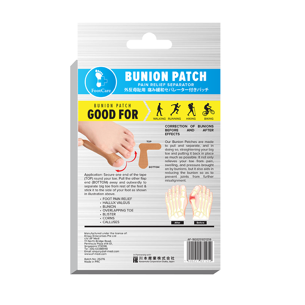 Our Bunion Patches are made to pull and separate, and in doing so, straightening your big toe and putting it back in place as much as possible. It not only relieves your toe from pain, swelling, and pressure brought on by bunions, but it also aids in reducing the bunion so as to prevent joints from further misalignment.