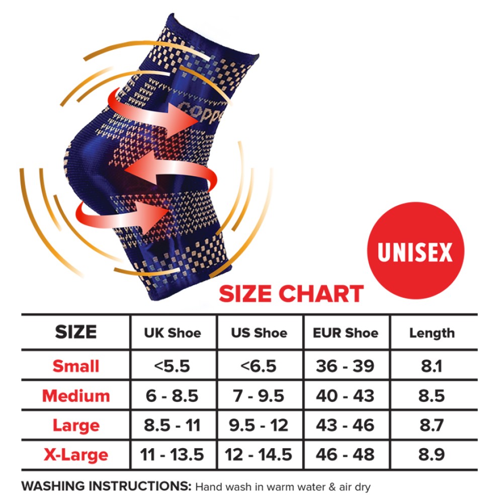 • Uniquely Infused with Copper - Made with 65% Copper Fiber Nylon + 35% Spandex + Rubber Silk, soft and breathable copper infused fabric, our ankle support is ergonomically designed to follow your ankle’s anatomy contour and provide controlled pressure to deter ankle injury.