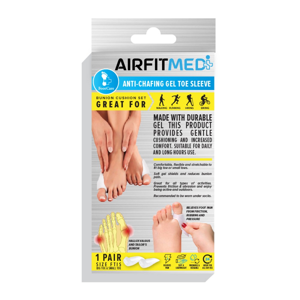 RELIEVES BUNION PAIN & PROVIDES CUSHIONING SUPPORT MADE WITH DURABLE GEL THIS PRODUCT PROVIDES GENTLE CUSHIONING AND INCREASE COMFORT. SUITABLE FOR DAILY AND LONG HOURS USE.
