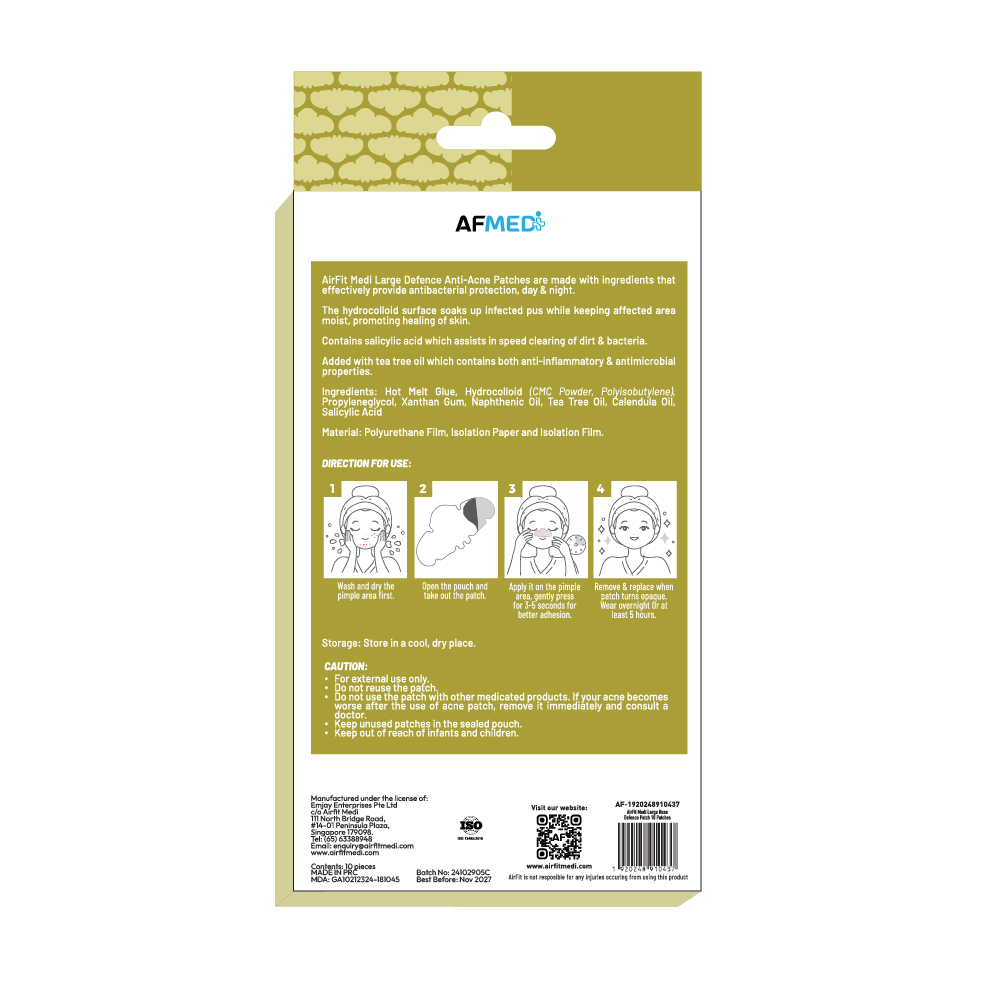 AirFit Medi Large Defence Anti-Acne Patches are made with ingredients that effectively provide antibacterial protection, day & night.