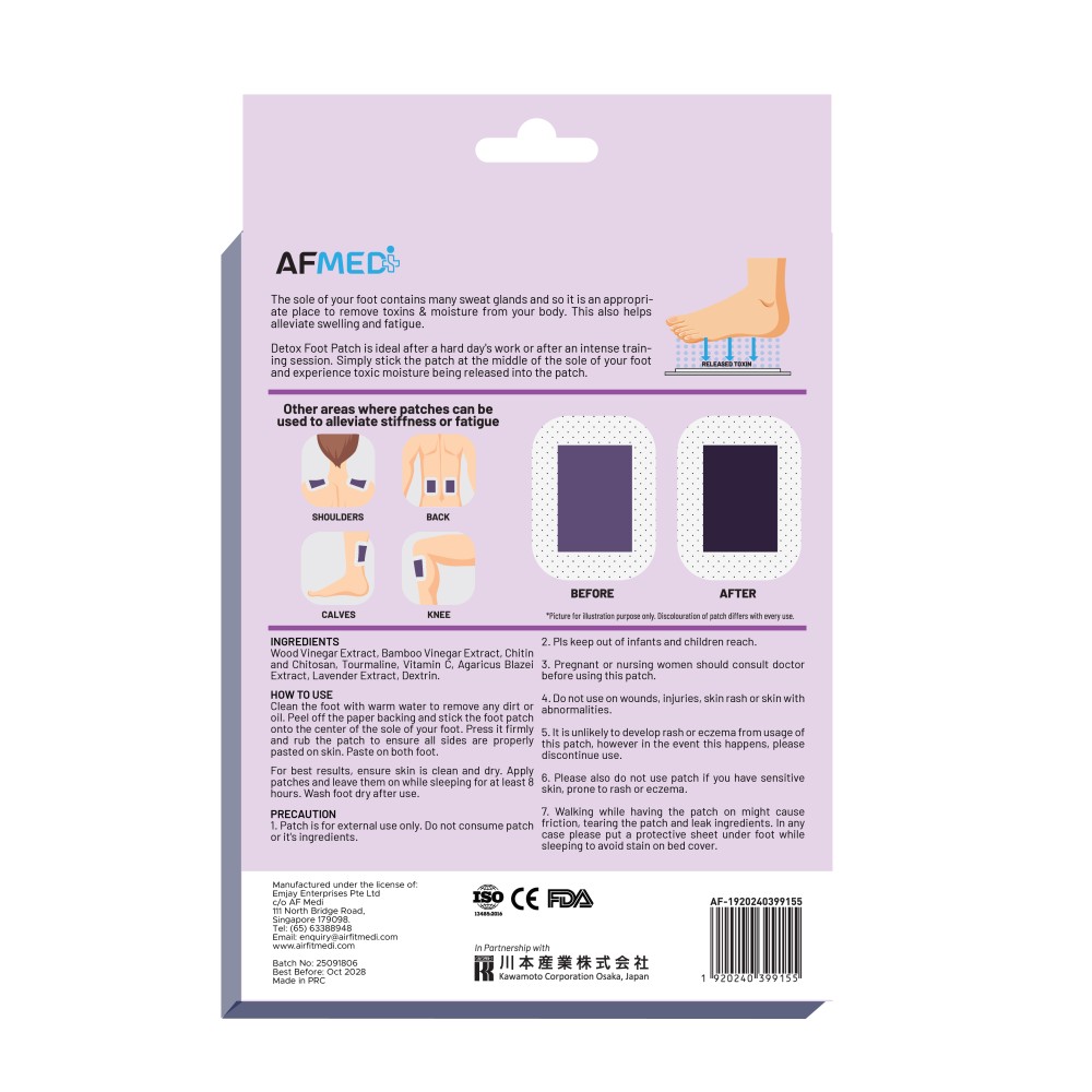 Detox Foot Patch is ideal after a hard day’s work or after an intense training session. Simply stick the patch at the middle of the sole of your foot and experience toxic moisture being released into the patch.