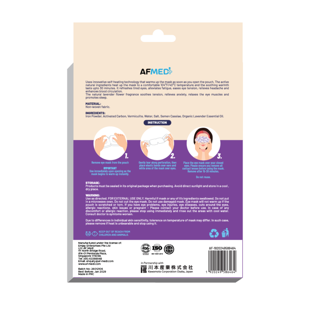 AF MEDI STEAM EYE MASK - 3 MASKS - LAVENDER