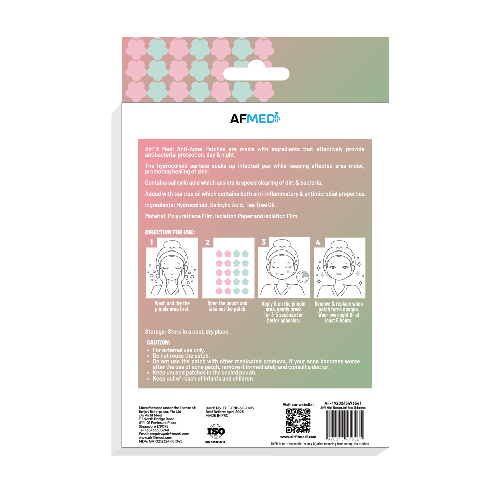 AirFit Medi Blossom Anti-Acne Patches are made with ingredients that effectively provide antibacterial protection, day & night.
